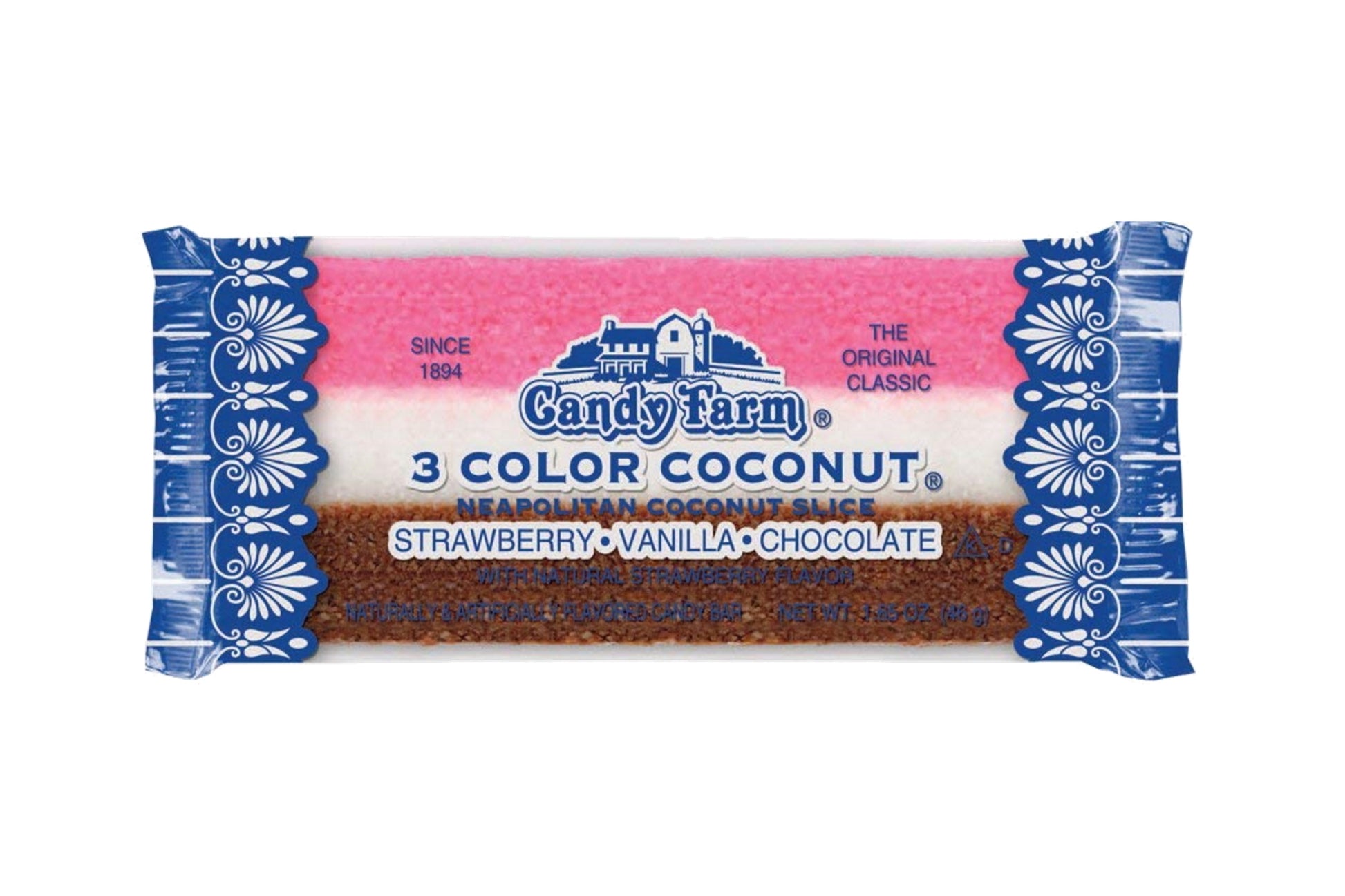 Ingredients: Dried coconut, corn syrup, sugar, invert sugar, cocoa, salt, natural strawberry flavor, artificial flavor & FD&C colors.